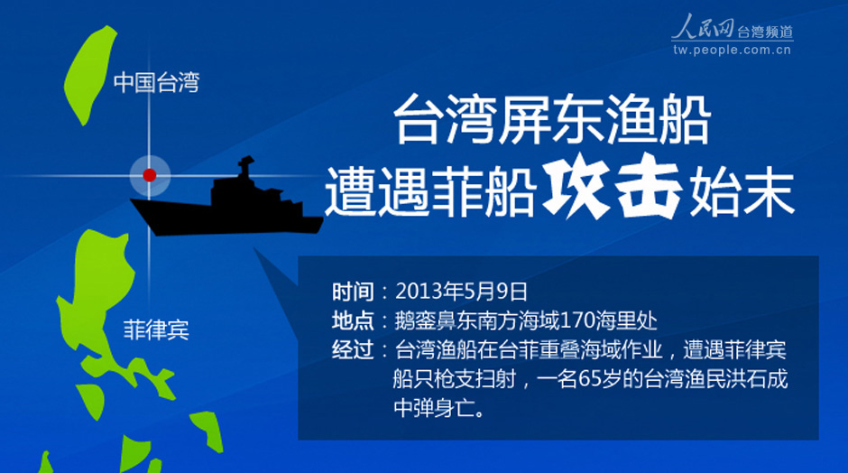 導語:台漁船“廣大興28號”2013年5月9日在台灣屏東縣鵝鑾鼻東南方約166海裡處,遭菲律賓公務船掃射,一名船員死亡。