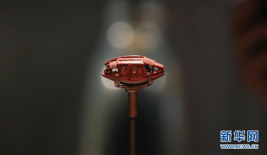 這是3月31日在澳大利亞悉尼舉辦的台北故宮博物院珍寶展上拍攝的清代陳祖章的雕橄欖核舟。一場主題為“天地人”的台北故宮博物院珍寶展正在澳大利亞悉尼展出,這也是台北故宮博物院的珍藏首次在南半球展出。新華社記者 白雪飛 攝