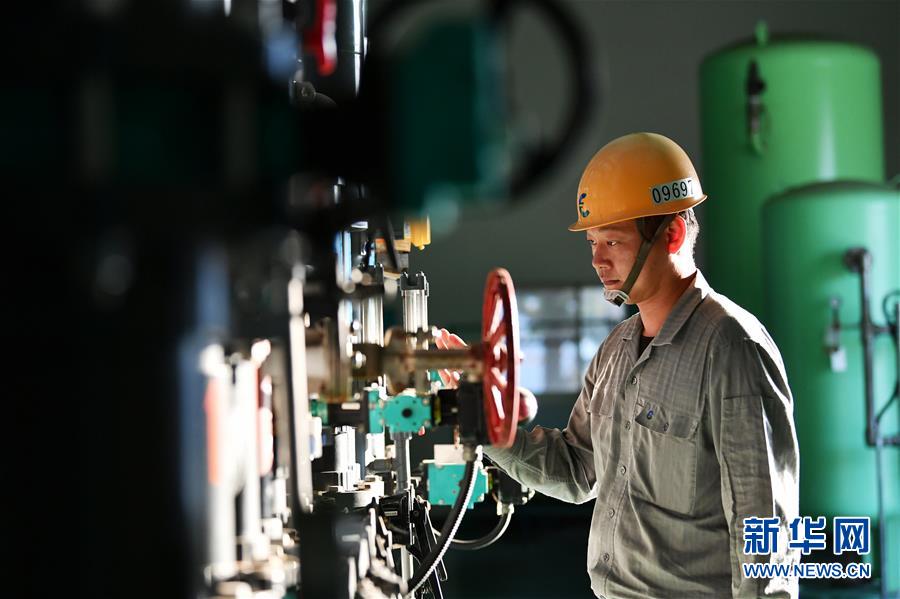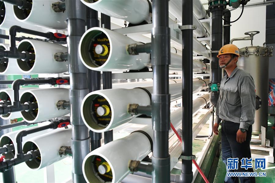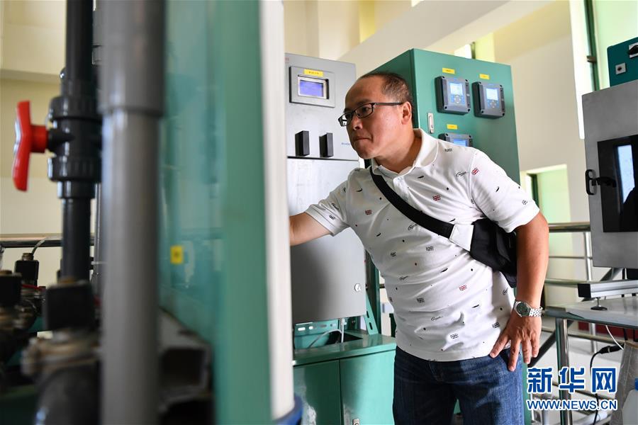 金門縣自來水廠一處淨水場的工作人員查看淨水設備運行情況(9月16日攝)。新華社記者 陳斌 攝