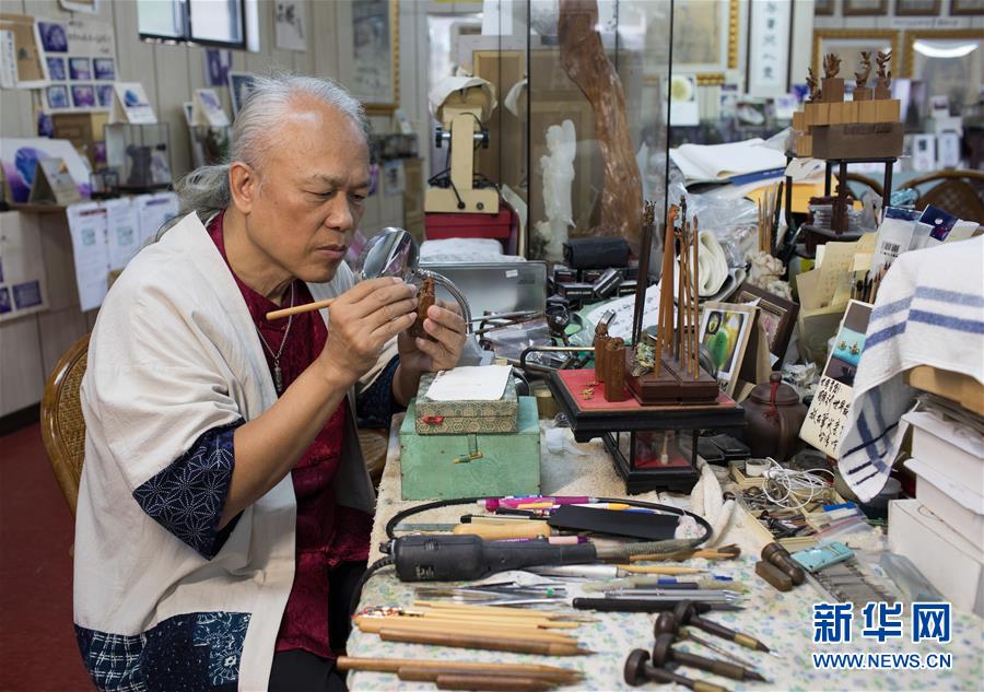 1月7日,台灣毫芒雕刻家陳逢顯在新北市工作室裡創作微雕作品。新華社記者 金立旺攝